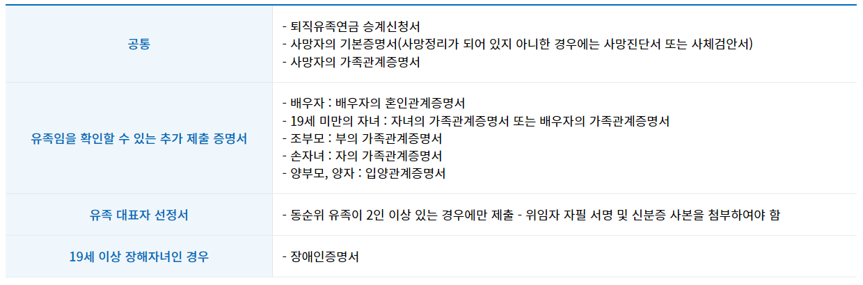 ✔ 공무원 퇴직연금 수급권자가 사망하였을 시 사망일로부터 5년 이내 신청하셔야 합니다.